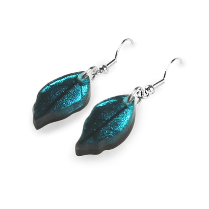 Teal Skeletal Leaf Shiny Fish Hook Earrings